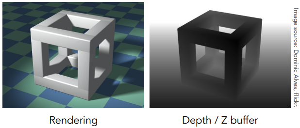 Z-Buffer会在生成渲染图的同时根据各采样点(像素)的深度值生成深度图,颜色越深代表距离越近,越浅则越远