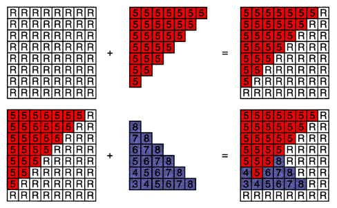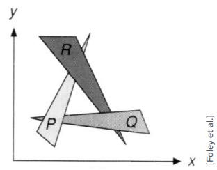 需要对不同深度的物体进行分类来确定面与面的绘制顺序,复杂度为$O(n\log n)$,其中n为三角形的个数,也存在一个无法解决的问题,不能处理无法确定绘制顺序的物体,例如下图互相遮挡的情况